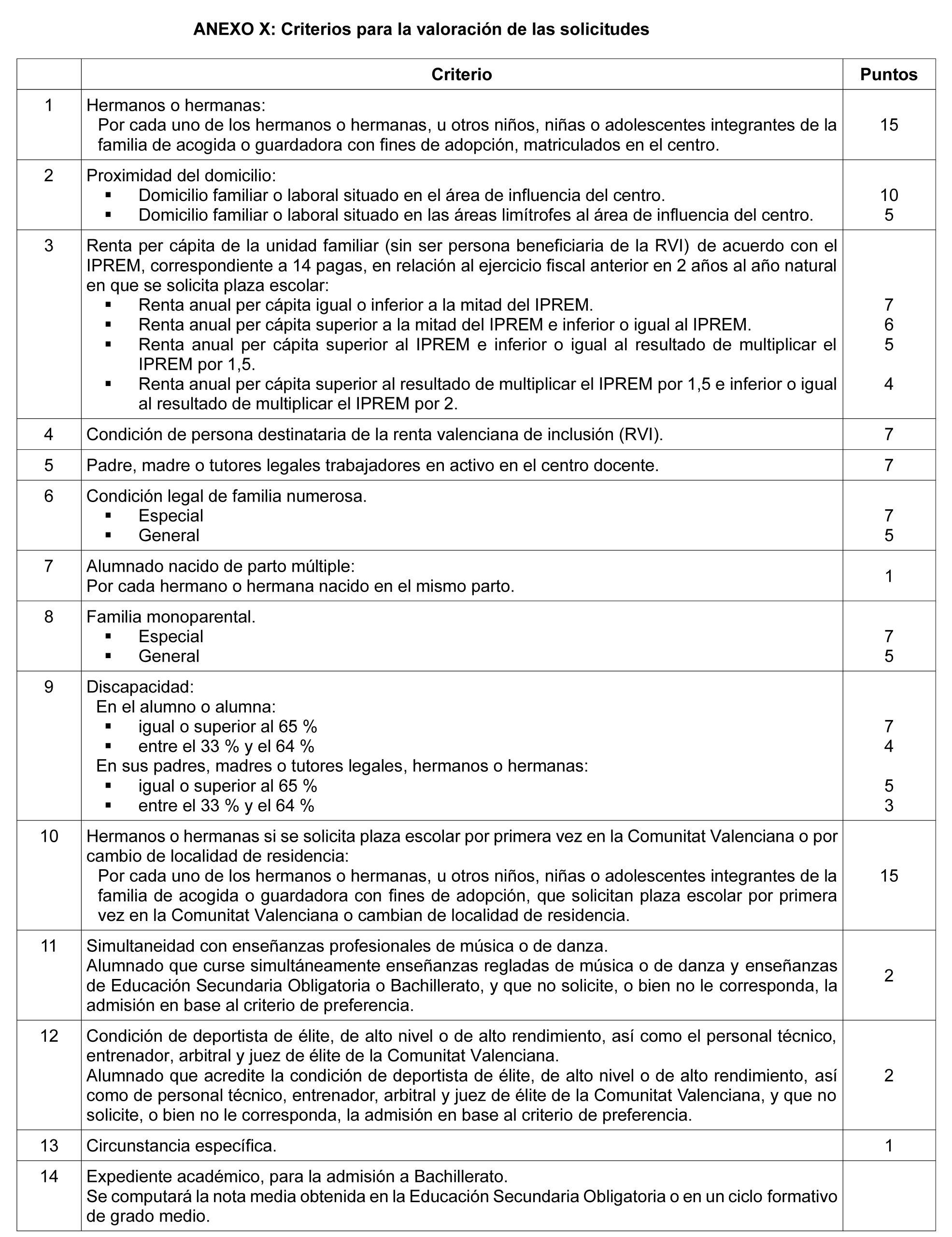 Información general para todas las etapas. En los Criterios de baremación encontrarás el desglose de puntos que se pueden disponer y que se tendrán en cuenta en la hora de resolver las admisiones.